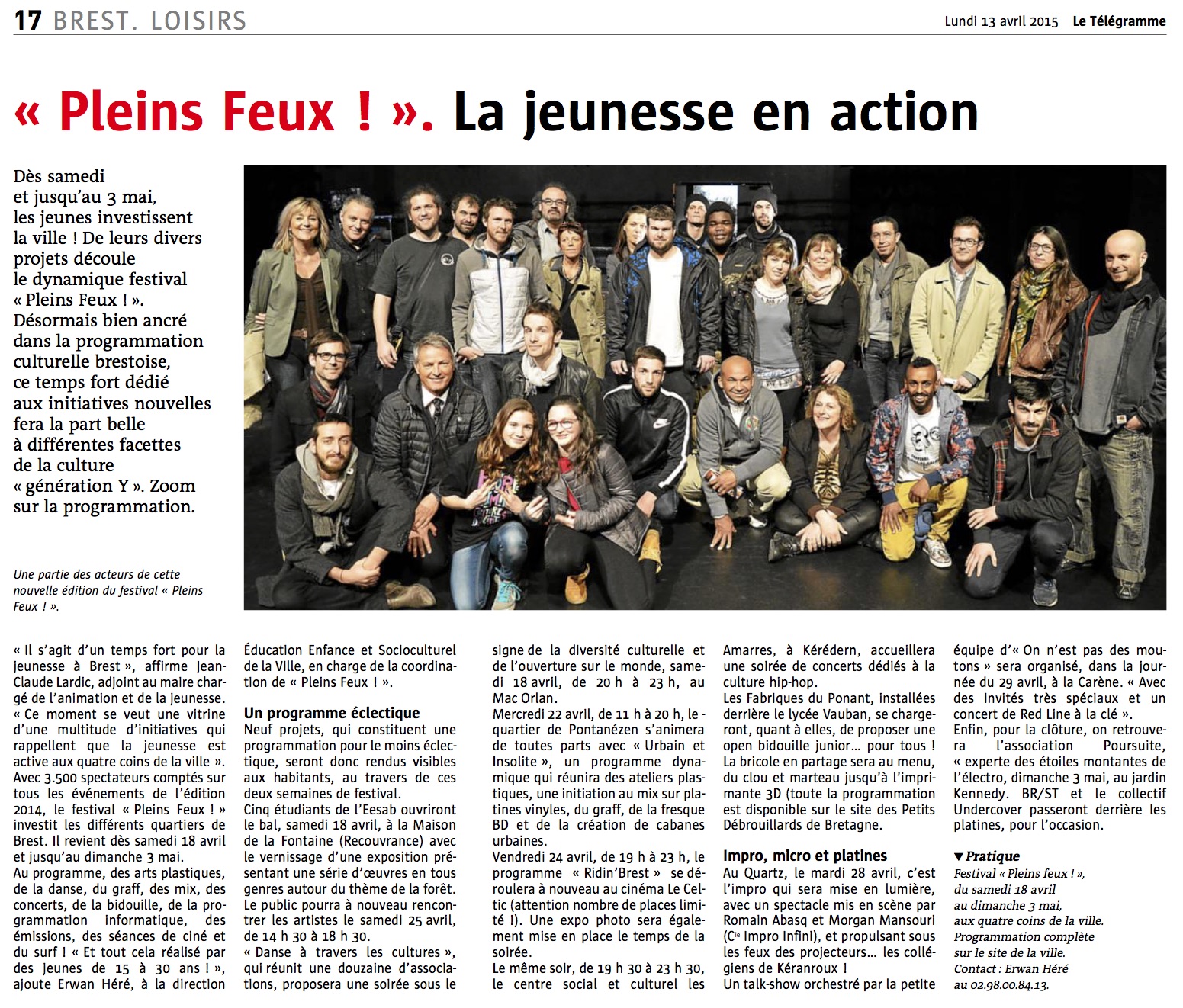 Télégramme du 6/04/16 : Collège de Kéranroux. Dans l’eau laisser une trace