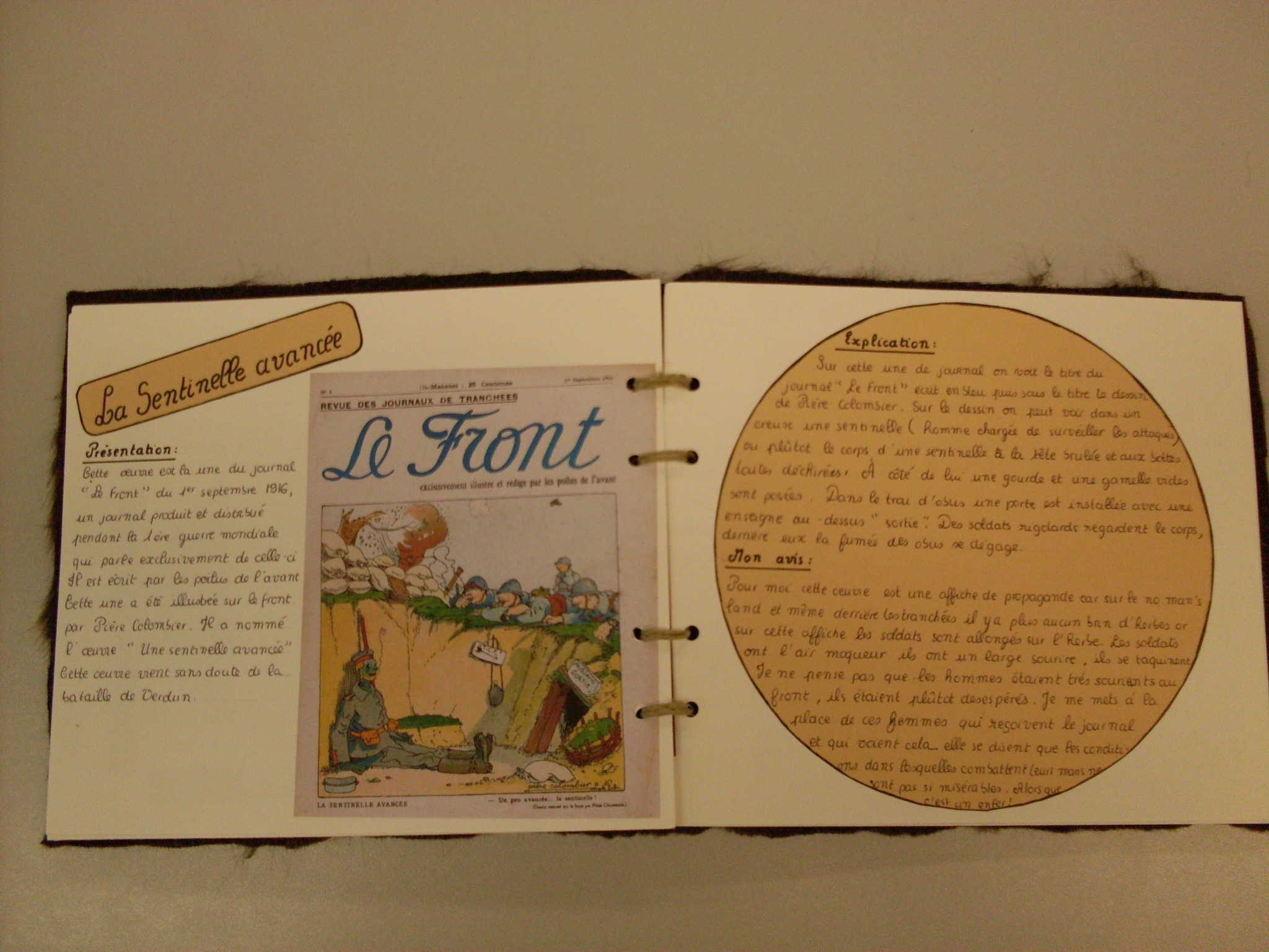 Exposition La Grande Guerre : Les CM2 du Questel au collège