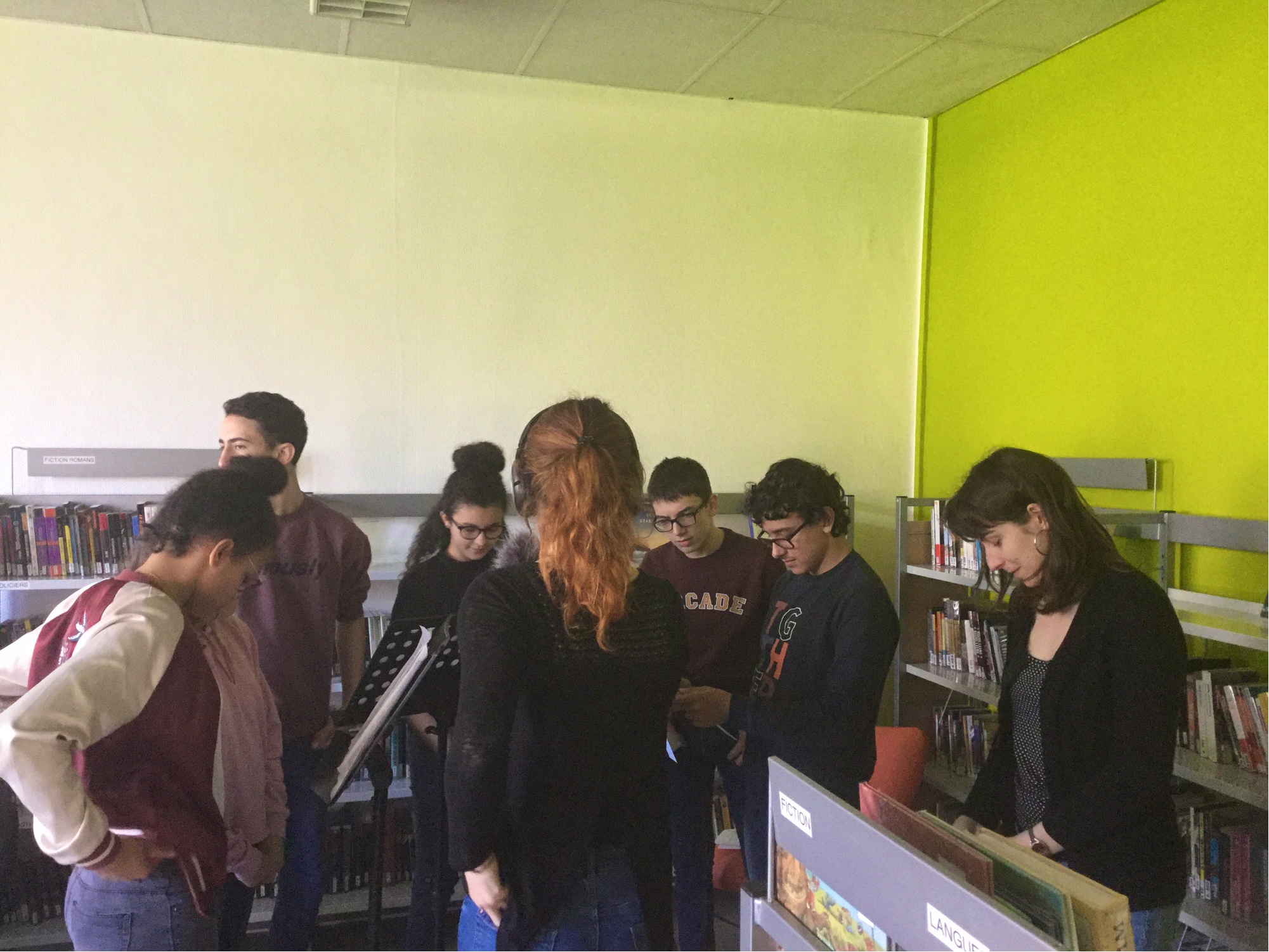 l’équipe des acteurs en plein enregistrement |
