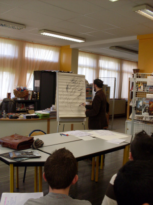 et clou du spectacle, à la demande de Hamza ( 5e D), il a effectué au pied levé un superbe dragon affiché au CDI.