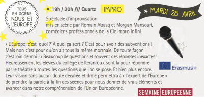 Pour la 3e année consécutive, les comédiens anglophones de la compagnie Pickles ont mené au collège de la Fontaine Margot un atelier d’improvisation théâtrale en anglais. Les élèves de 4e et de 3e suivant l’option LCE (deux heures d’anglais en plus chaque semaine), accompagnés de leurs professeurs, ont joué pendant 90 minutes des scènes de films célèbres en se jouant des genres cinématographiques.