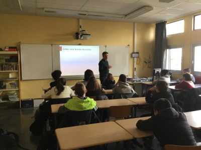 Gwendal Lemercier a longuement répondu aux questions préparées par les cinquièmes D et E avec leurs professeurs ( Mme le Carré et Mme Goussain) sur son métier , ses passions, sa formation, ses projets .